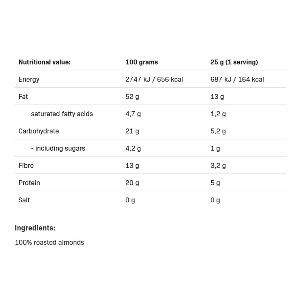 MANDELCREME FÜR EINEN AKTIVEN LEBENSSTIL Mandeln sind ein Muss in der Ernährung von Sportlern: Sie sind eine großartige Quelle für pflanzliches Protein und Vitamin E, welches freie Radikale neutralisiert, die während intensiver Aktivitäten entstehen. Sie sind auch eine ausgezeichnete Calciumquelle (ca. 269 mg / 100 g), was für die Gesundheit von Knochen und Nervensystem entscheidend ist. Studien zeigen, dass das Calcium aus Mandeln besonders gut bioverfügbar ist, was es für Sportler und Personen mit veganer Ernährung besonders wertvoll macht.