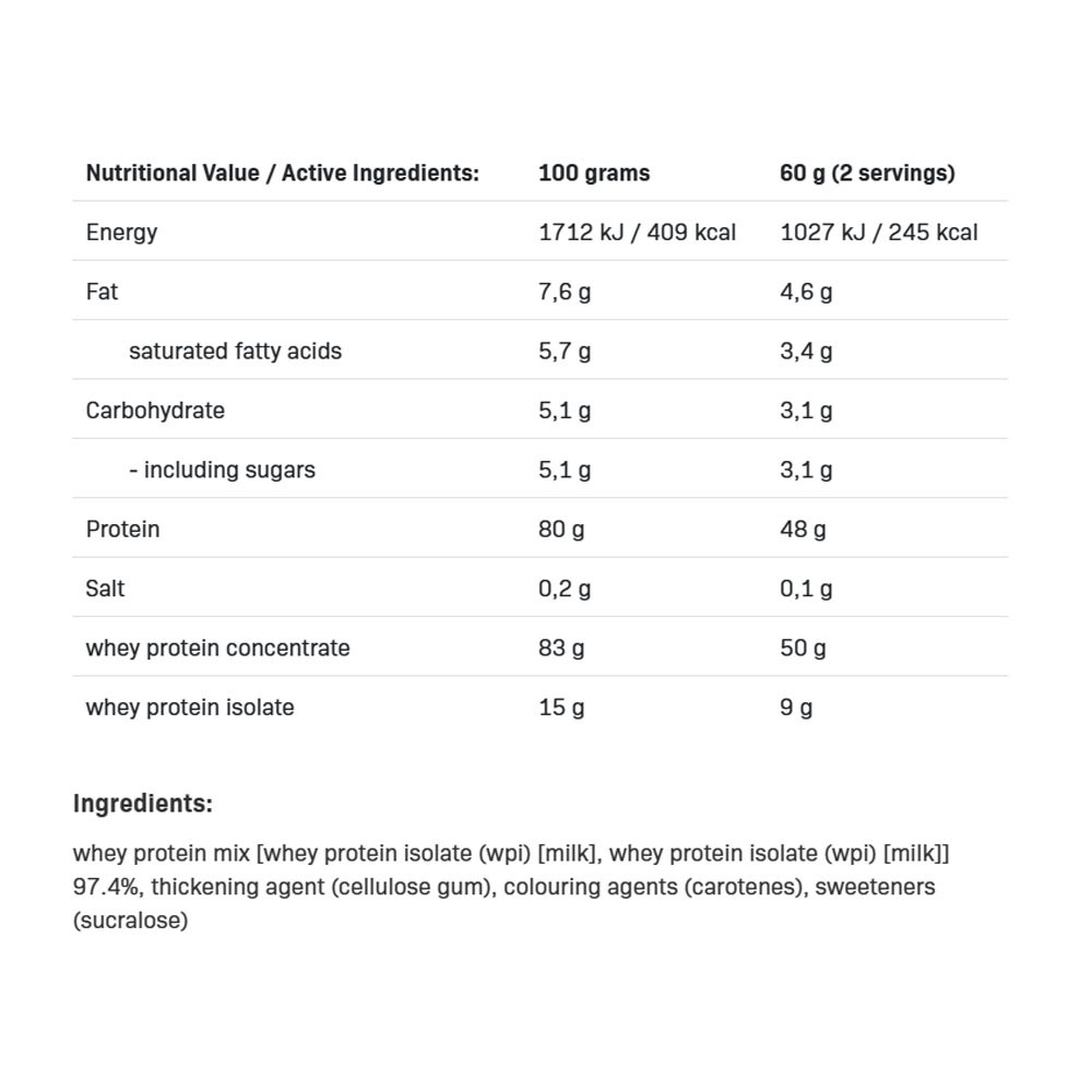 MISCHT SICH GUT UND LÖST SICH EINFACH AUFPRO WHEY liegt in instantisierter Form vor, weshalb es sich gut mischt, leicht auflöst und die Konsistenz der verzehrfertigen Proteinportion perfekt cremig und vollkommen klumpenfrei ist. Dadurch kann das Supplement auch als vollwertige Zutat in gesunden Backwaren, Desserts und Snacks in der Küche verwendet werden.