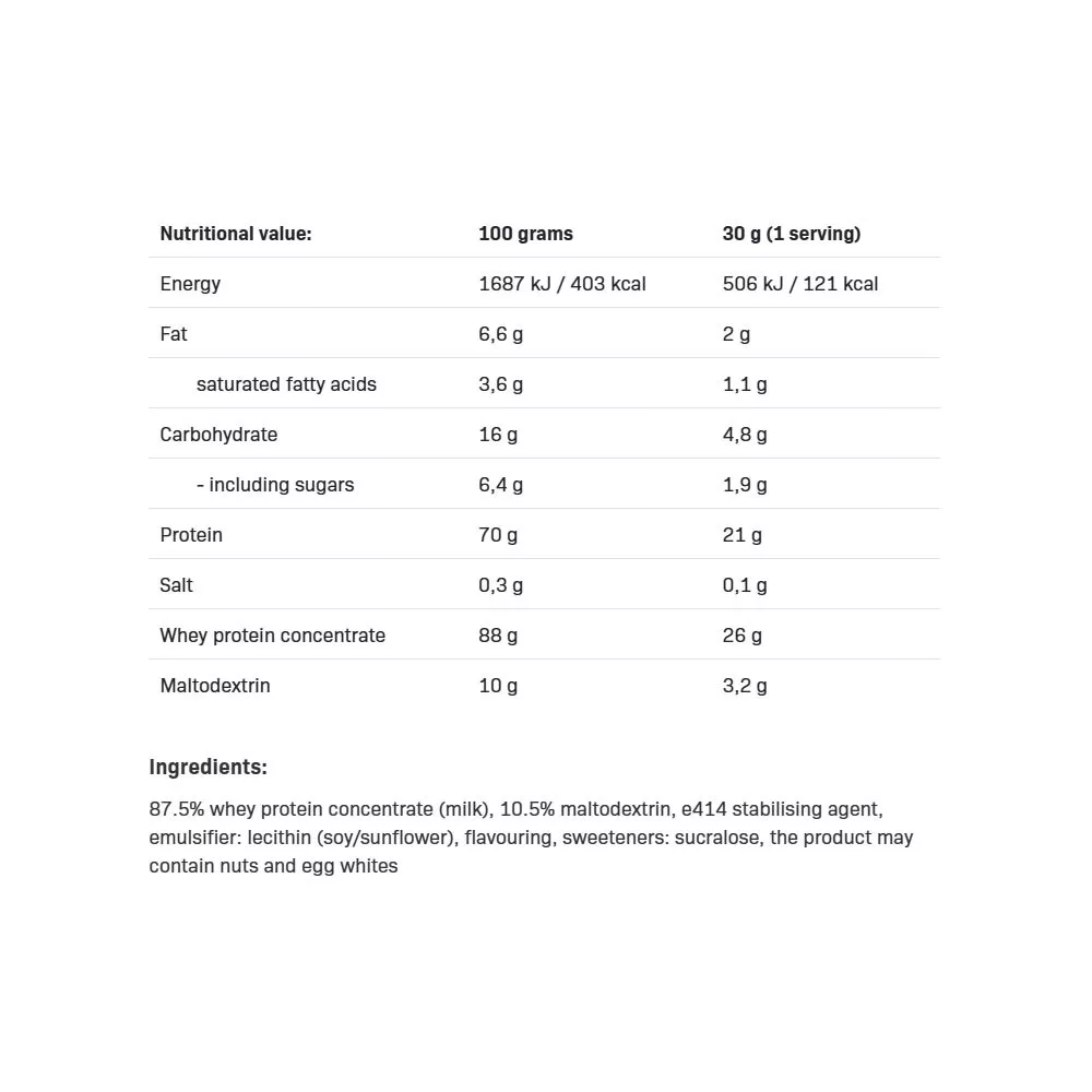 ALLNUTRITION WHEY PROTEIN ist der meistverkaufte WPC-Proteinshake, der für Menschen mit einem aktiven Lebensstil entwickelt wurde und effektive Unterstützung während des Trainings bietet. WHEY PROTEIN garantiert ein vollständiges Protein, das hilft, Muskelmasse aufzubauen und zu erhalten.