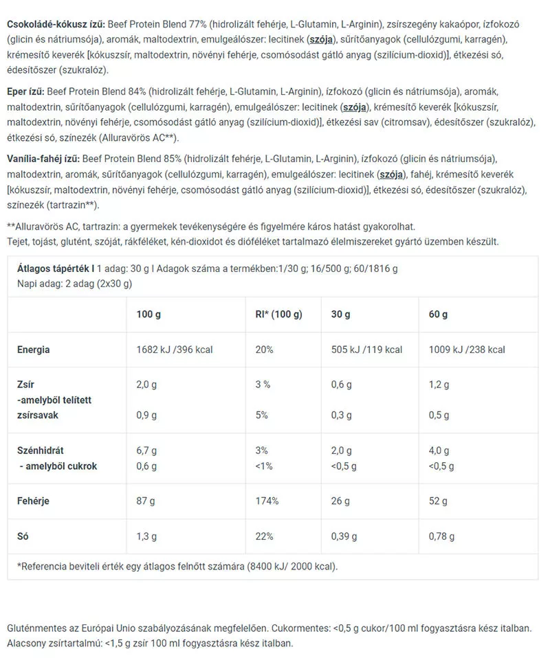 • Beef Protein ist eine hervorragende Proteinquelle für jeden es trägt zum Erhalt gesunder Knochen und Muskelmasse bei sowie zum Muskelwachstum