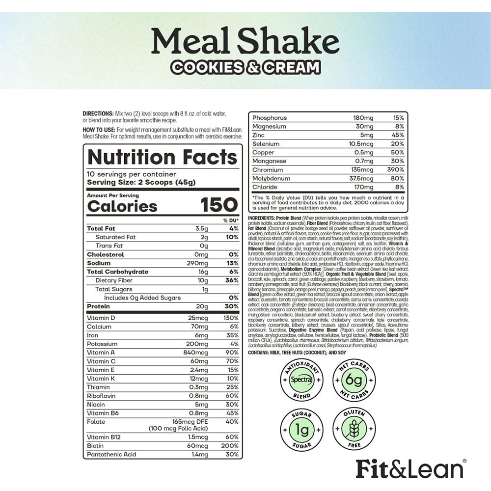 Fit & Lean Meal Shake - Mahlzeitenersatz und Fettbrenner (450 g, Cookies & Cream)