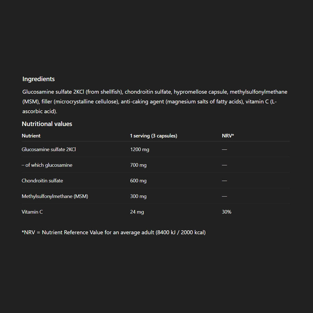 • enthält Glucosamin, Chondroitin, MSM und Vitamin C