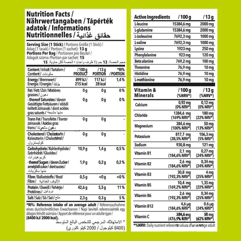 Unsere einzigartige EAA Pro Amino Blend liefert wichtige Aminosäuren wie L-Leucin, L-Glutamin, L-Isoleucin und L-Valin, die zusammen wirken, um