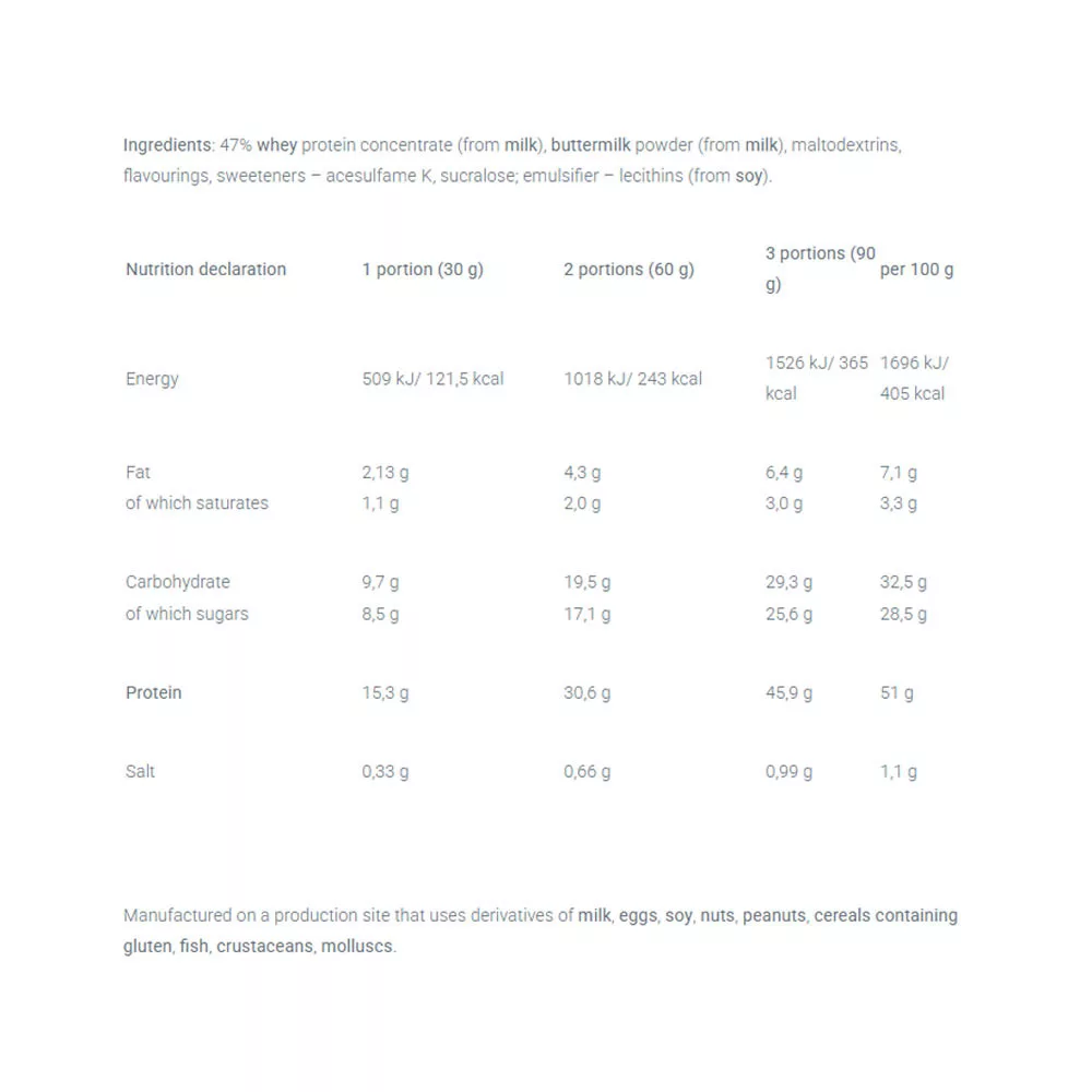 Whey Protein Xplode Powder ist ein einzigartiges, proteinreiches Produkt, dem man nicht widerstehen kann. Es ermöglicht Ihnen die schnelle und einfache Zubereitung eines schmackhaften Proteinshakes mit einer dicken, cremigen Konsistenz (dank der Zugabe von Buttermilchpulver). Mit jeder Portion (30 g) erhalten Sie über 15 g hochwertiges Eiweiß in Form von Molkenproteinkonzentrat (WPC), das zum Wachstum und Erhalt von Muskelmasse beiträgt.