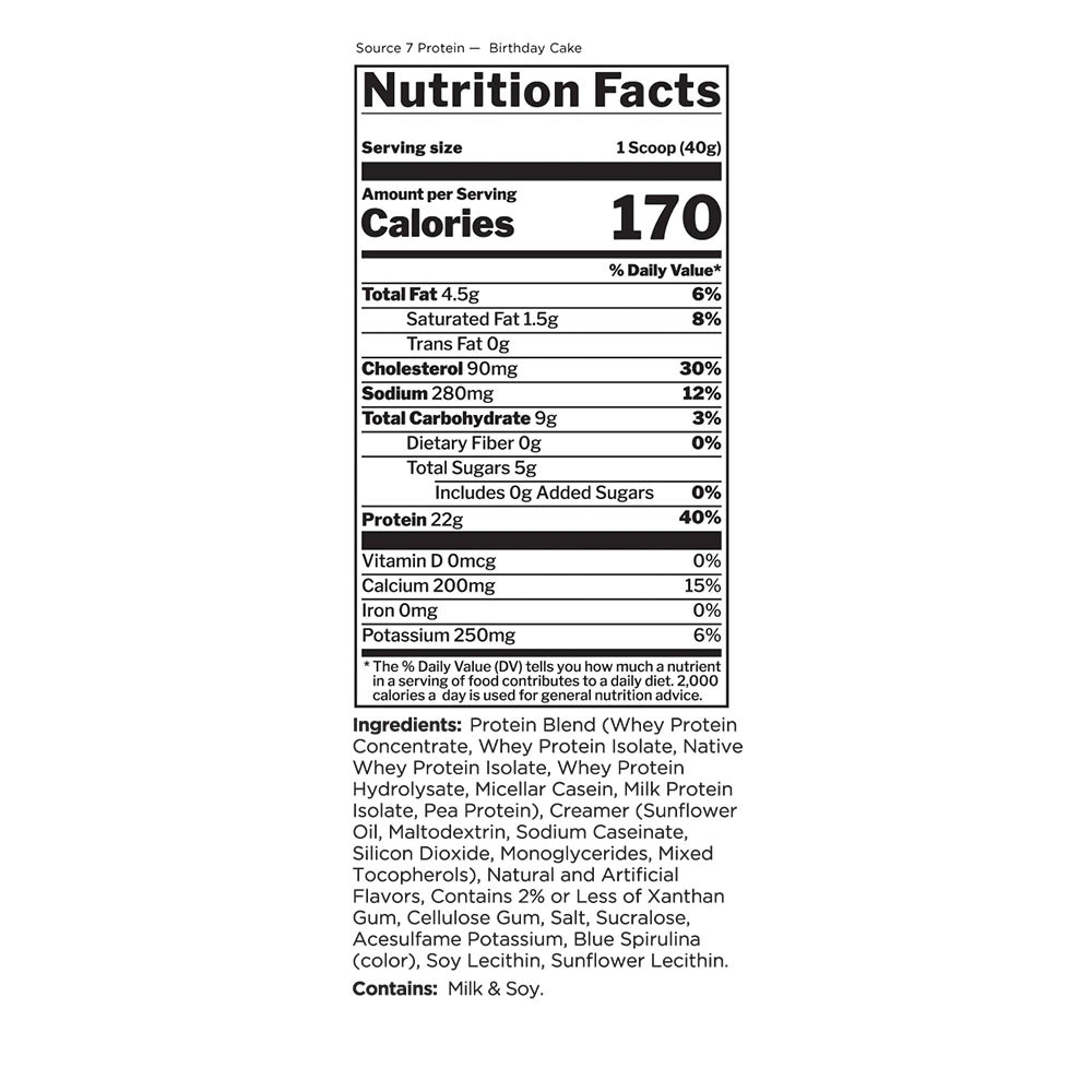 Source 7 Protein kombiniert sieben hochwertige Proteinquellen in jedem ultra-cremigen, extra-dekadenten Shake. Der außergewöhnlich gute Geschmack wird durch einfache Mixbarkeit und 22 Gramm hochwertiges Protein pro Portion ergänzt. Es ist perfekt für alle, die mit einer Proteinreise beginnen oder eine köstliche Abwechslung zum üblichen Scoop suchen—Source 7 Protein ist eine hervorragende Ergänzung für einen aktiven Lebensstil, zu jeder Zeit oder immer.