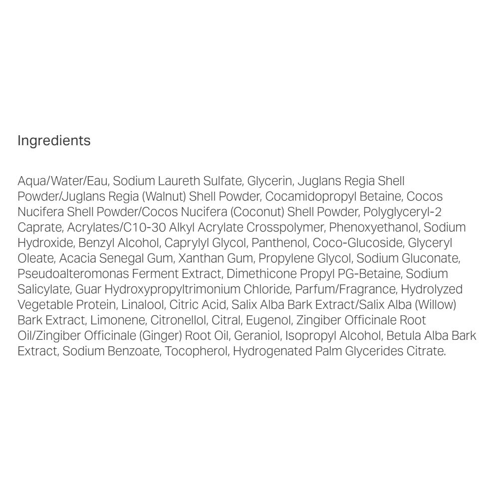 Es besteht zu 90% aus Inhaltsstoffen natürlichen Ursprungs, darunter Ingweröl sowie Extrakte aus Birkenrinde und Weißweidenrinde. Verwenden Sie es wöchentlich anstelle des Ginger Anti-Schuppen-Shampoos, um Ablagerungen aus dem Haar zu entfernen und lose Schuppen auszuwaschen.
