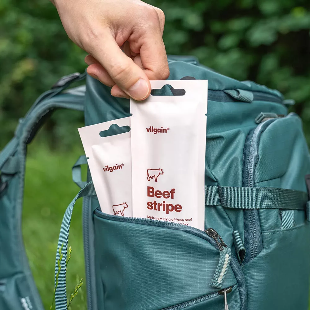 Im Vergleich zu traditionellem Jerky sind die Vilgain Beef Strips weicher, saftiger und leichter zu kauen.