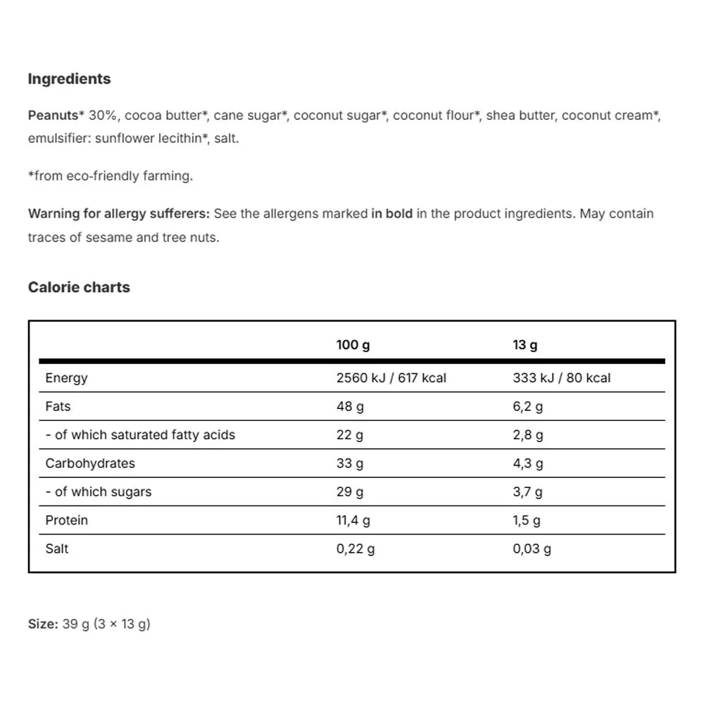 Erlebe die Geschmacksexplosion von Kakao und cremiger Nussbutter, mit der tropischen Süße von Kokosblütenzucker im Inneren. Glutenfrei, laktosefrei, ohne minderwertige Öle oder unnütze Zutaten. 100 % vegan, 100 % bio.