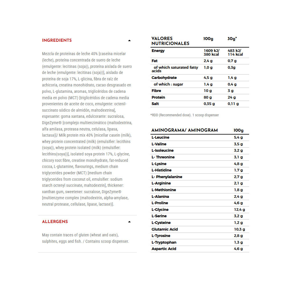 • 3-Phasen-sequenzielle Freisetzung → Kombiniert schnell, mittel und langsam verdauliche Proteine für eine konstante Aminosäurenzufuhr.