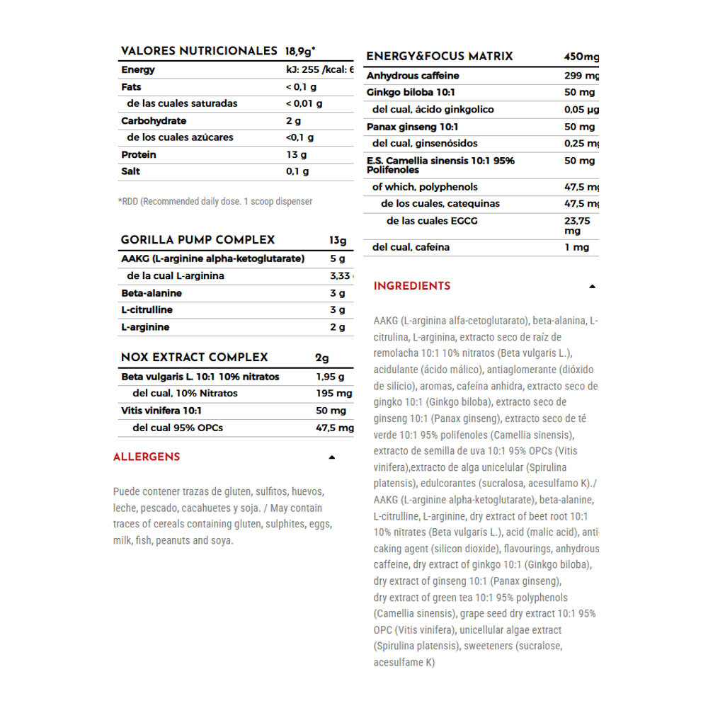 Die Kombination aus Anhydruskoffein, grünem Tee und Guarana als Stimulanzien wird Ihren mentalen Fokus während des Trainings auf ein neues Niveau heben. Sie werden mit eigenen Augen sehen, was es bedeutet, in der Wildnis zu leben. Willkommen in unserem Zoo!